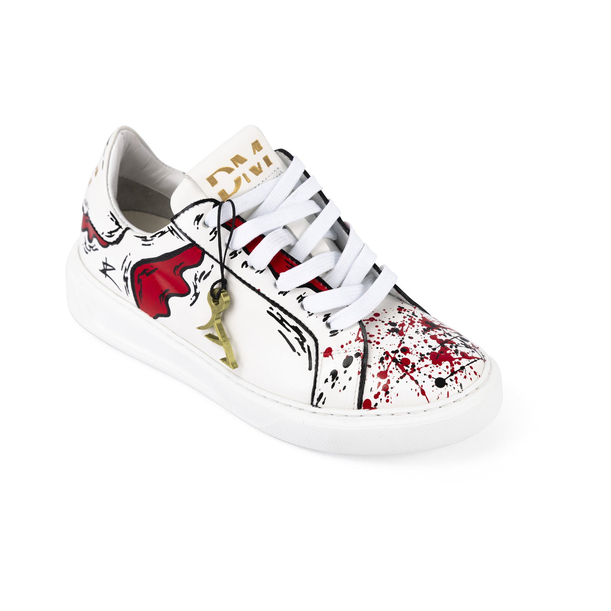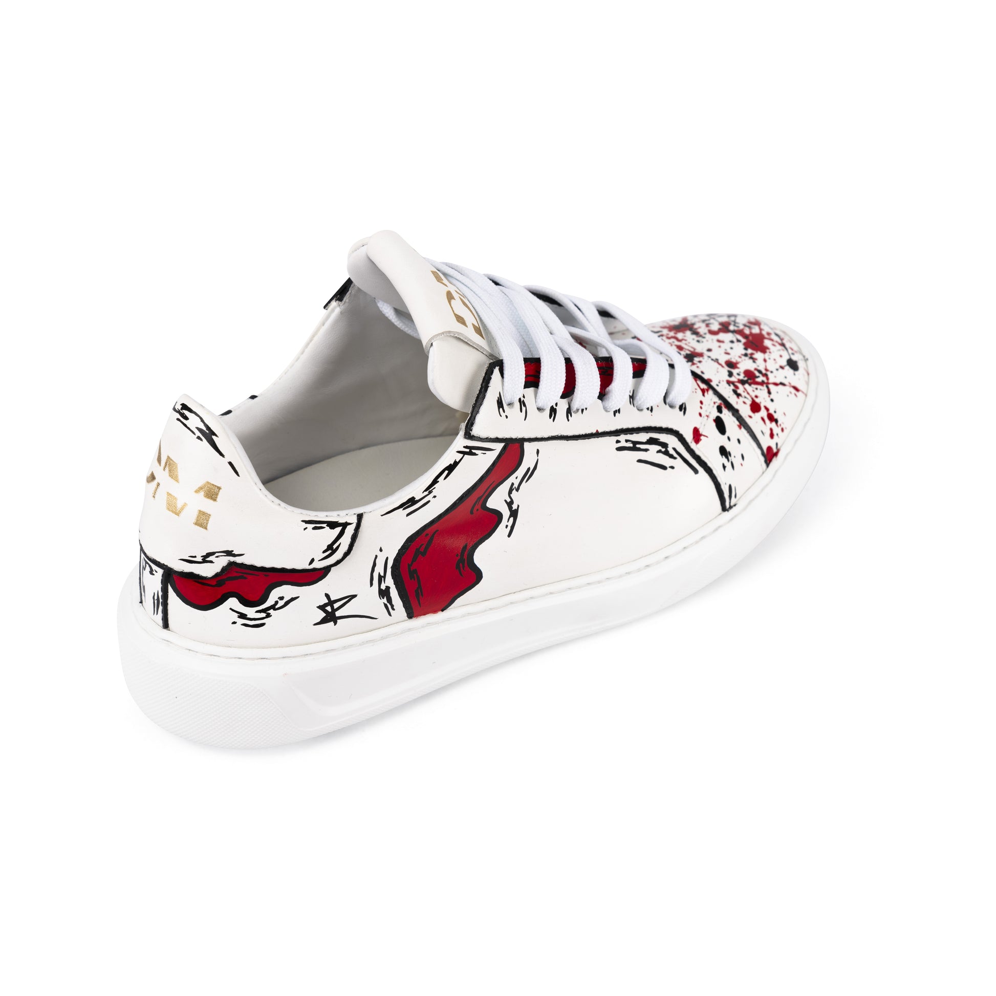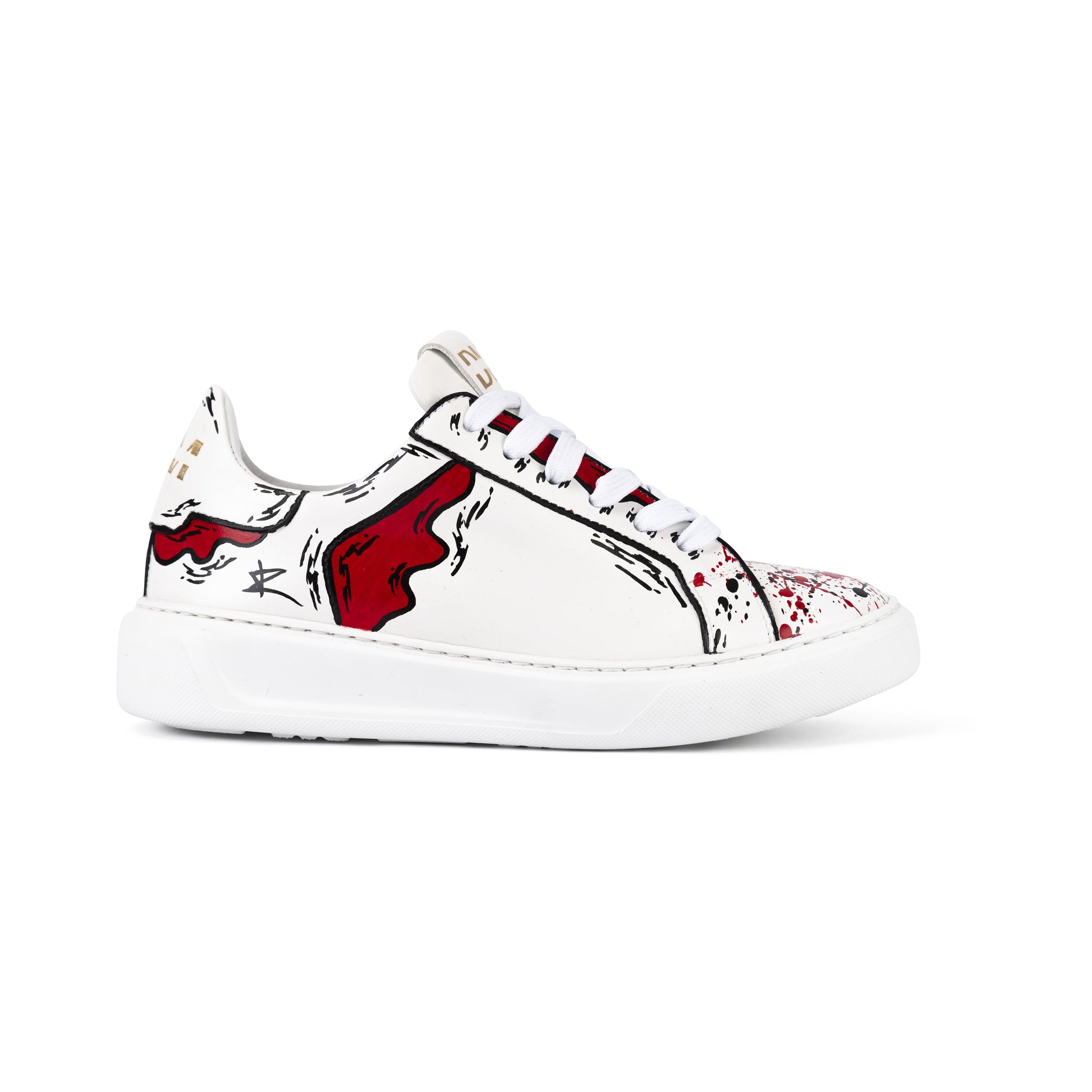 Una sneaker unica nel suo genere, dipinta a mano con abilità artigianale. Ogni pennellata racconta una storia, trasformando le scarpe in un capolavoro personalizzato che si distingue con stile e originalità ad ogni passo.