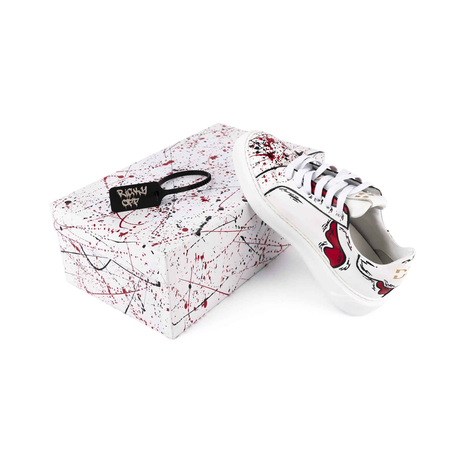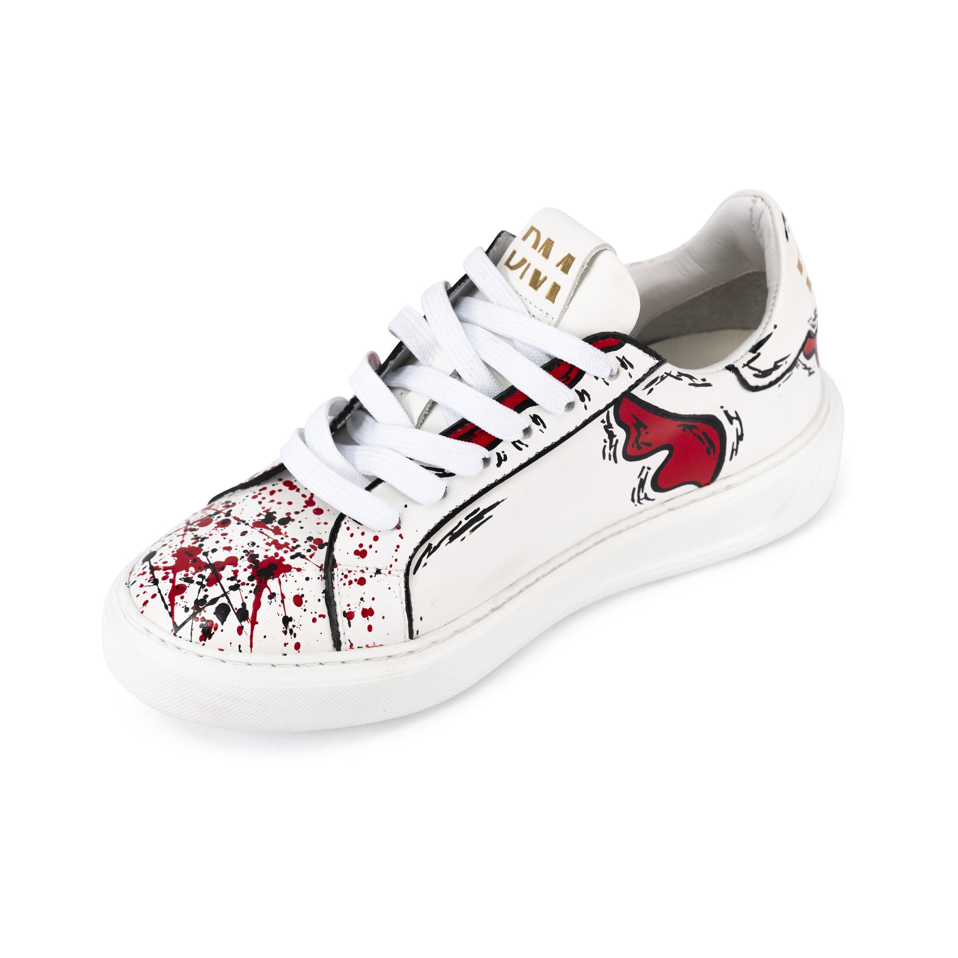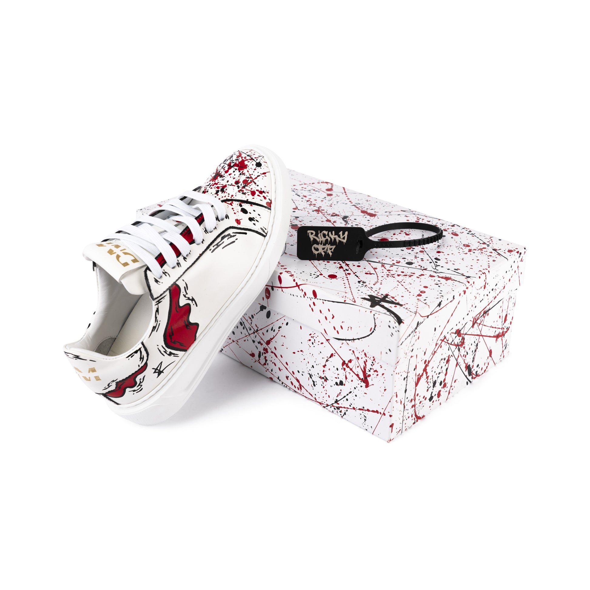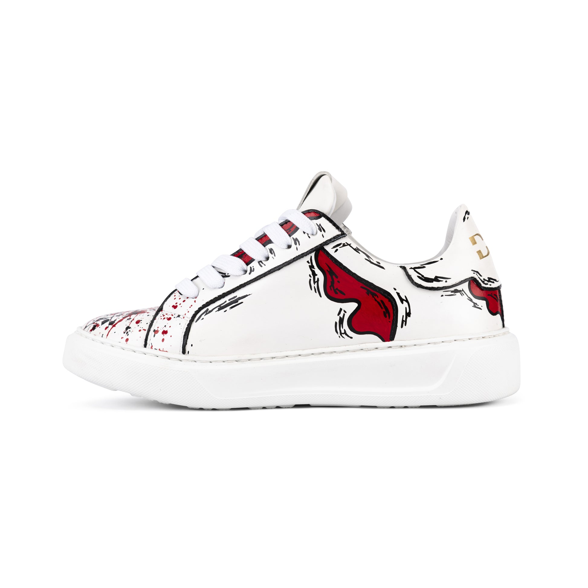 Una sneaker unica nel suo genere, dipinta a mano con abilità artigianale. Ogni pennellata racconta una storia, trasformando le scarpe in un capolavoro personalizzato che si distingue con stile e originalità ad ogni passo.