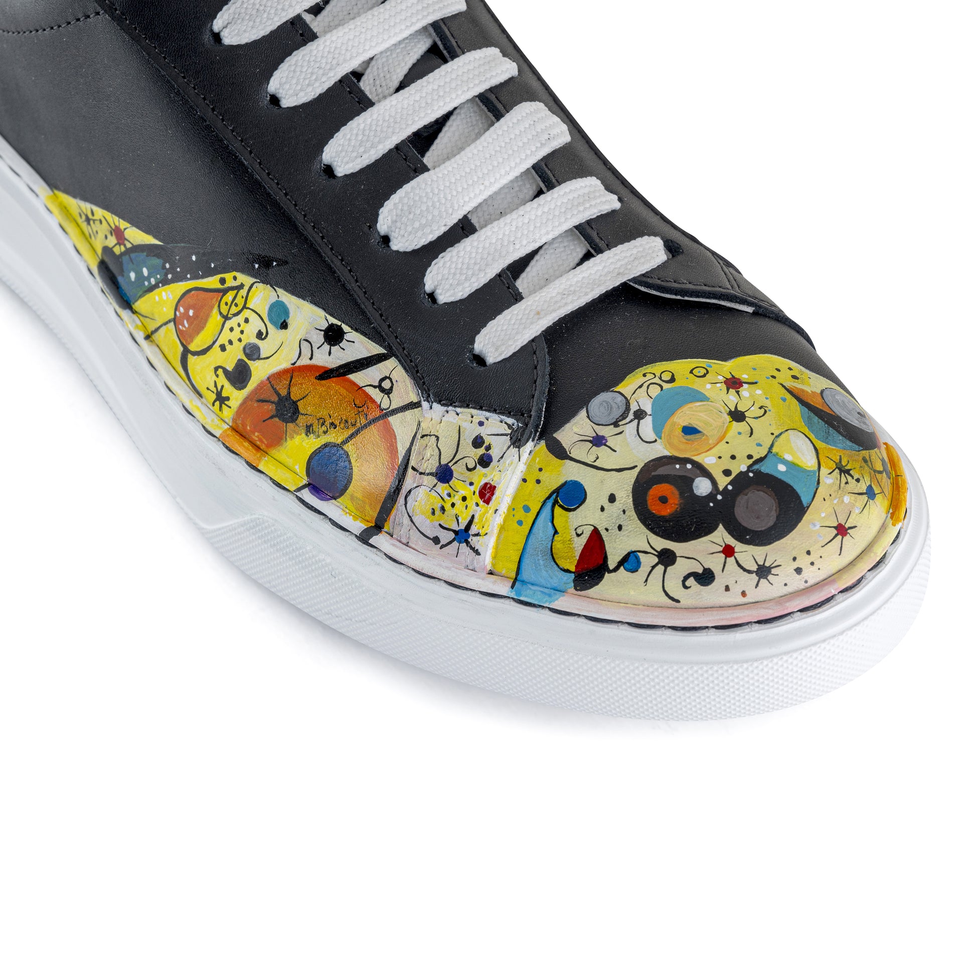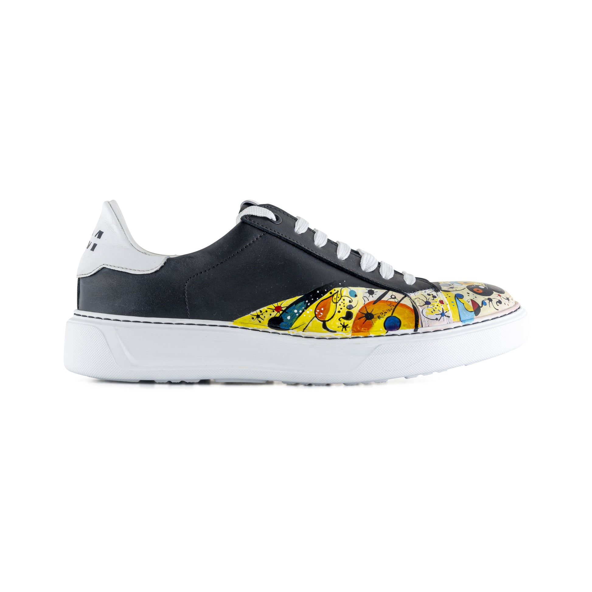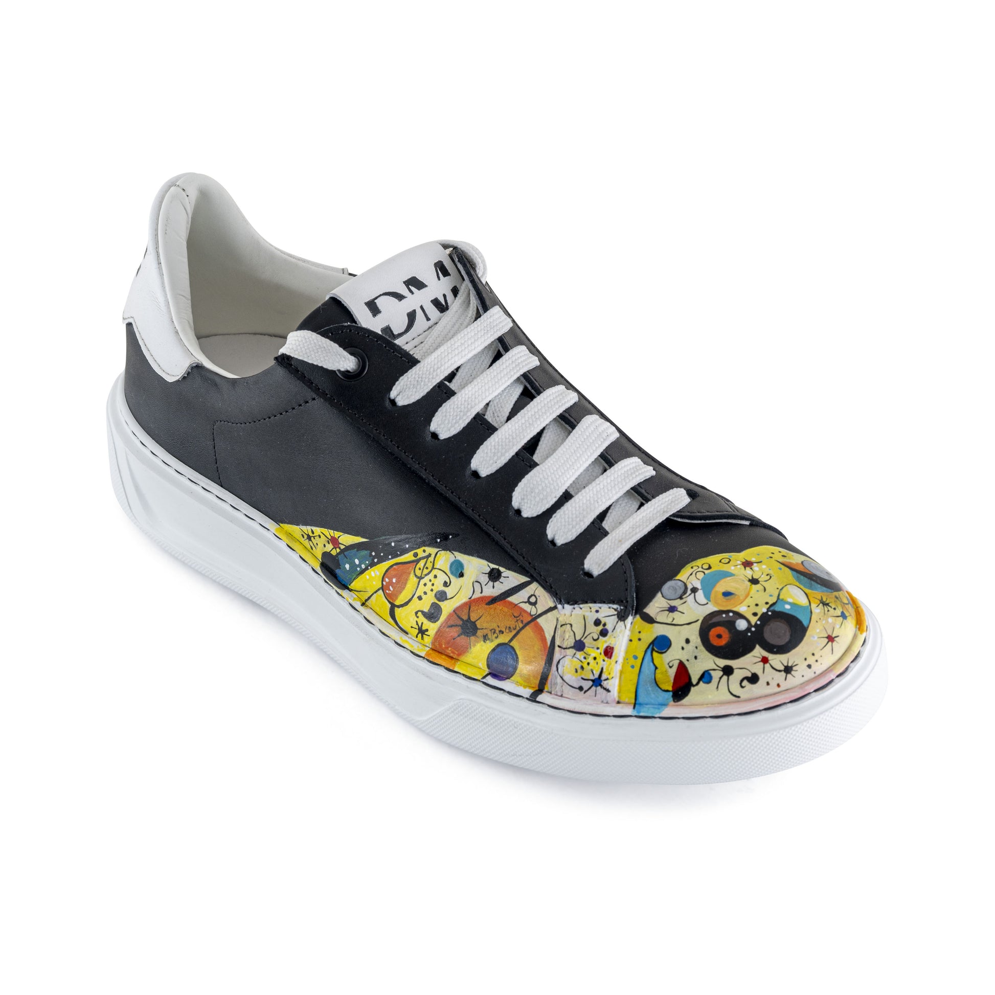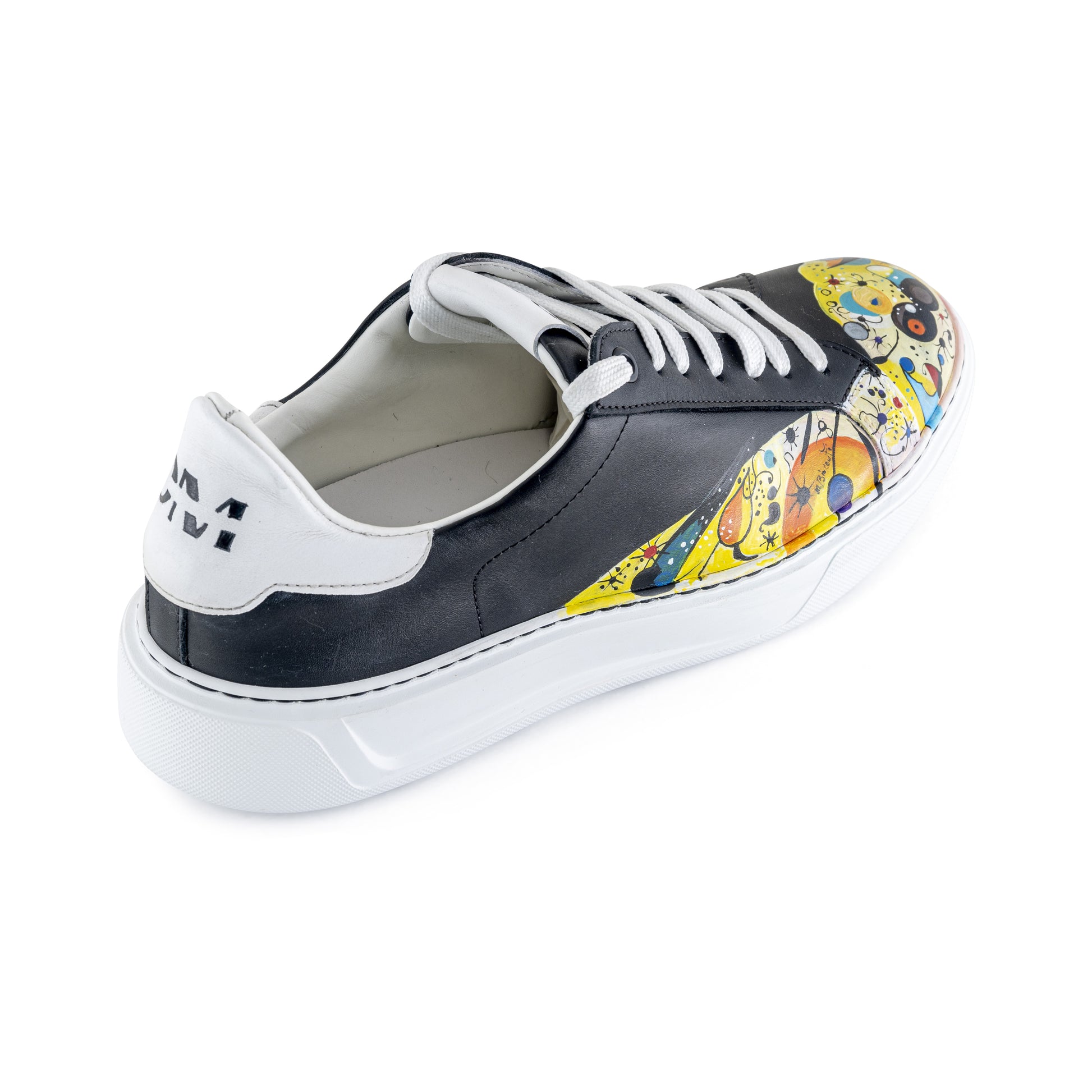 Una sneaker unica nel suo genere, dipinta a mano con abilità artigianale. Ogni pennellata racconta una storia, trasformando le scarpe in un capolavoro personalizzato che si distingue con stile e originalità ad ogni passo.