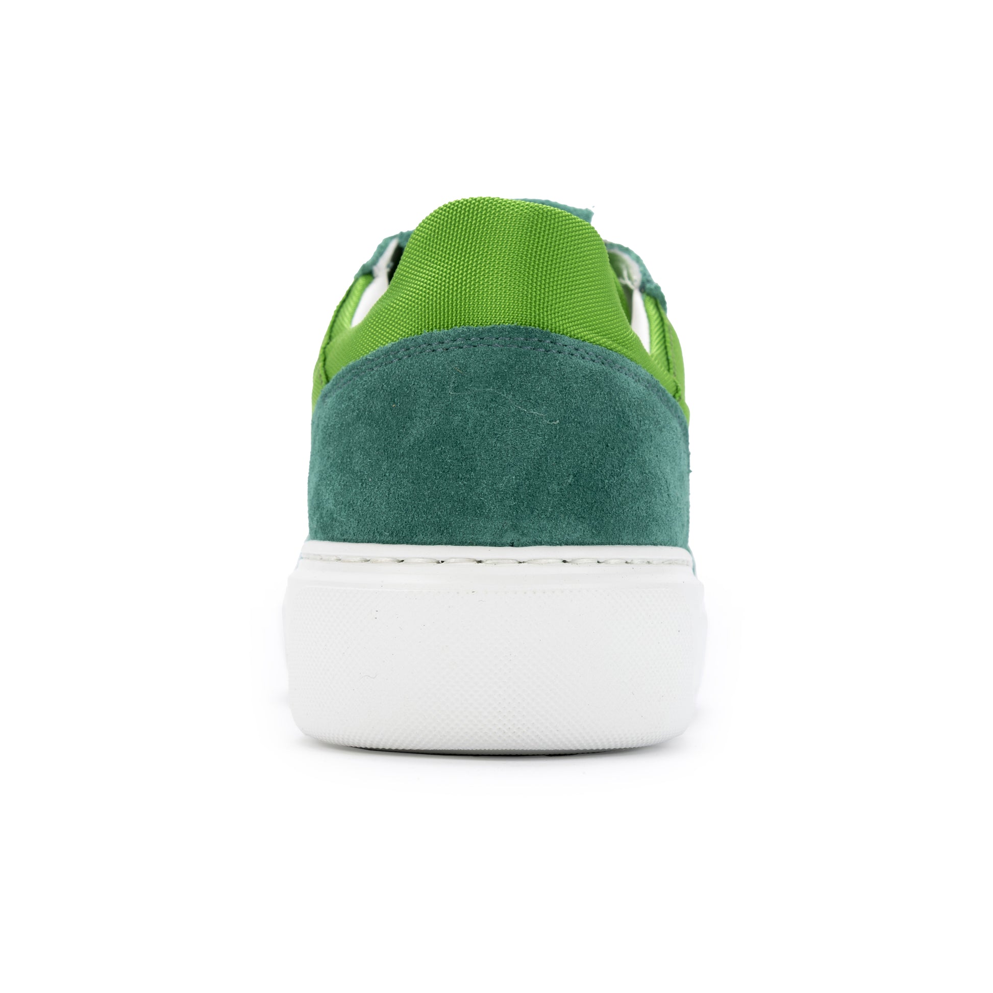 Sneaker con tomaia realizzata principalmente in tessuto e in pelle di vitello. Fodera in pelle, il fussbett estraibile con copertura in pelle, la suola in gomma ultra leggera.