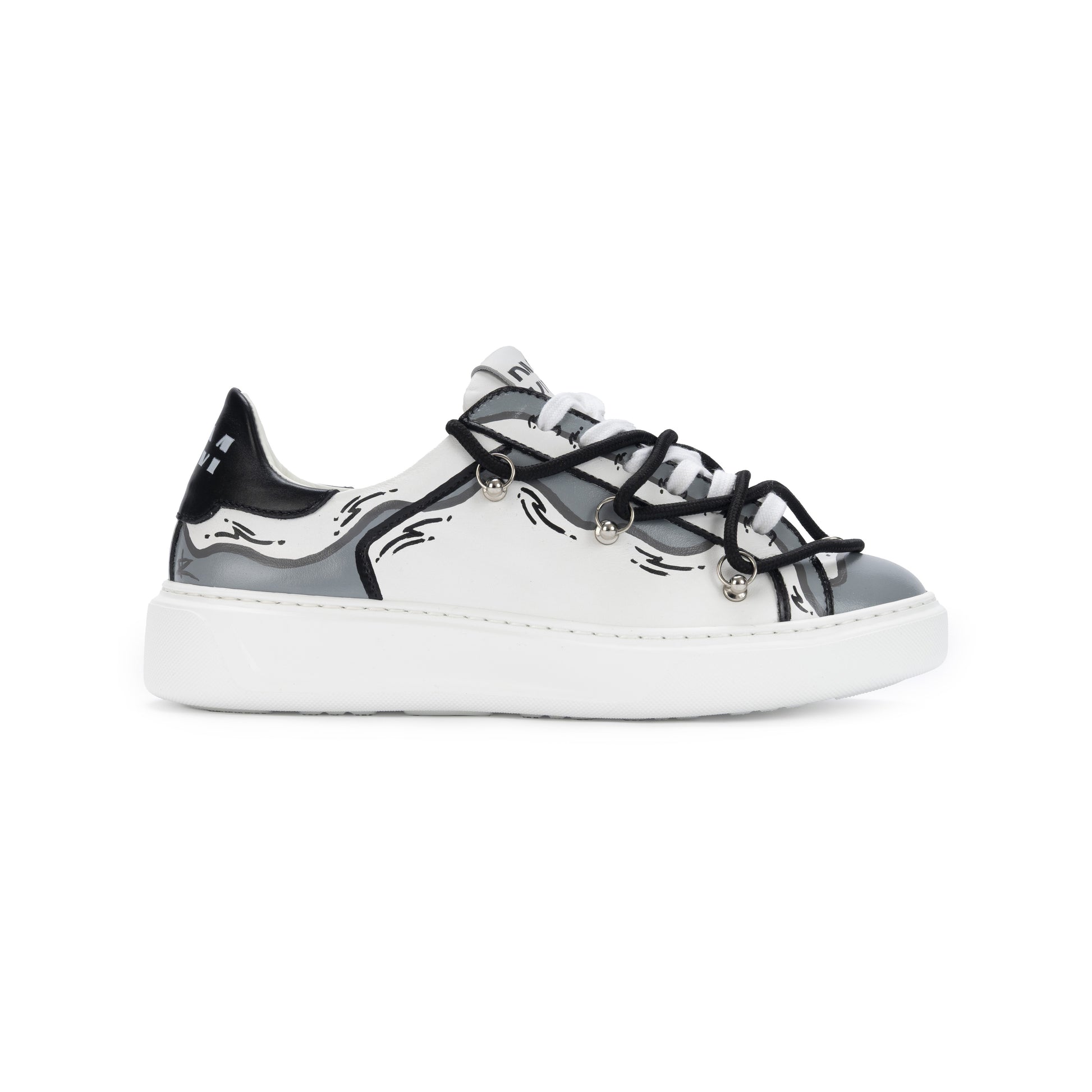 Una sneaker unica nel suo genere, dipinta a mano con abilità artigianale. Ogni pennellata racconta una storia, trasformando le scarpe in un capolavoro personalizzato che si distingue con stile e originalità ad ogni passo.