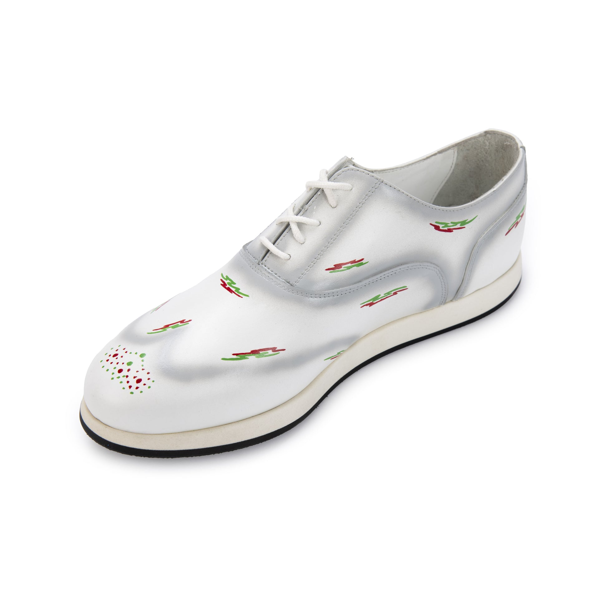 Una sneaker unica nel suo genere, dipinta a mano con abilità artigianale. Ogni pennellata racconta una storia, trasformando le scarpe in un capolavoro personalizzato che si distingue con stile e originalità ad ogni passo.